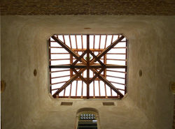 Charpente et couverture en ardoises sur un pigeonnier du XVIIIème siècle reconstruit à l’identique au Musée de Plein air à Villeneuve d’Ascq.